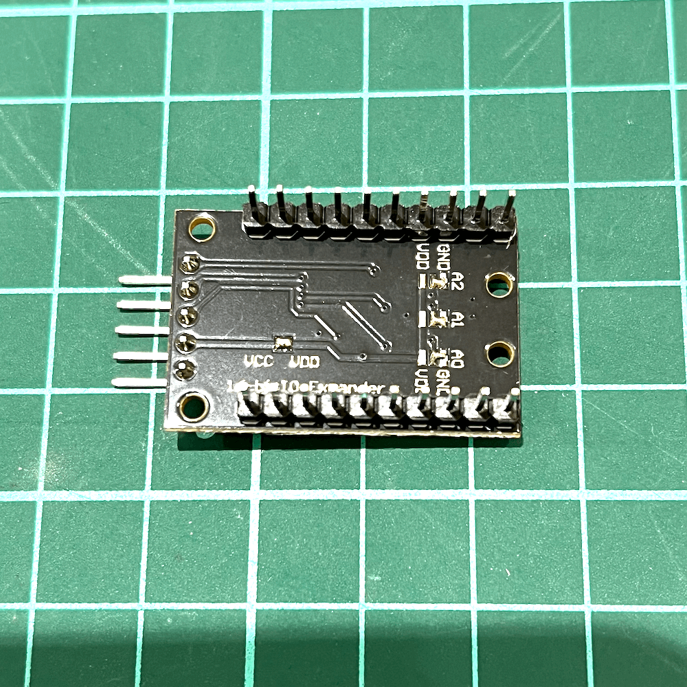 在板載3.3V轉換器電路上,不焊接VCC-VDD則PCF8575的電壓準位為3.3V。焊接電壓準位將與輸入VCC相同。