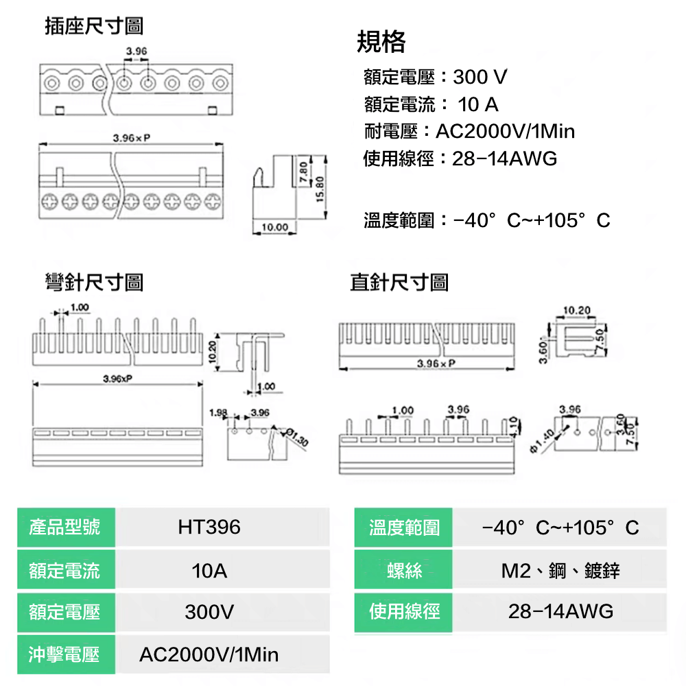 HT396 4P接線端子3.96MM PCB直針彎針插座 數量